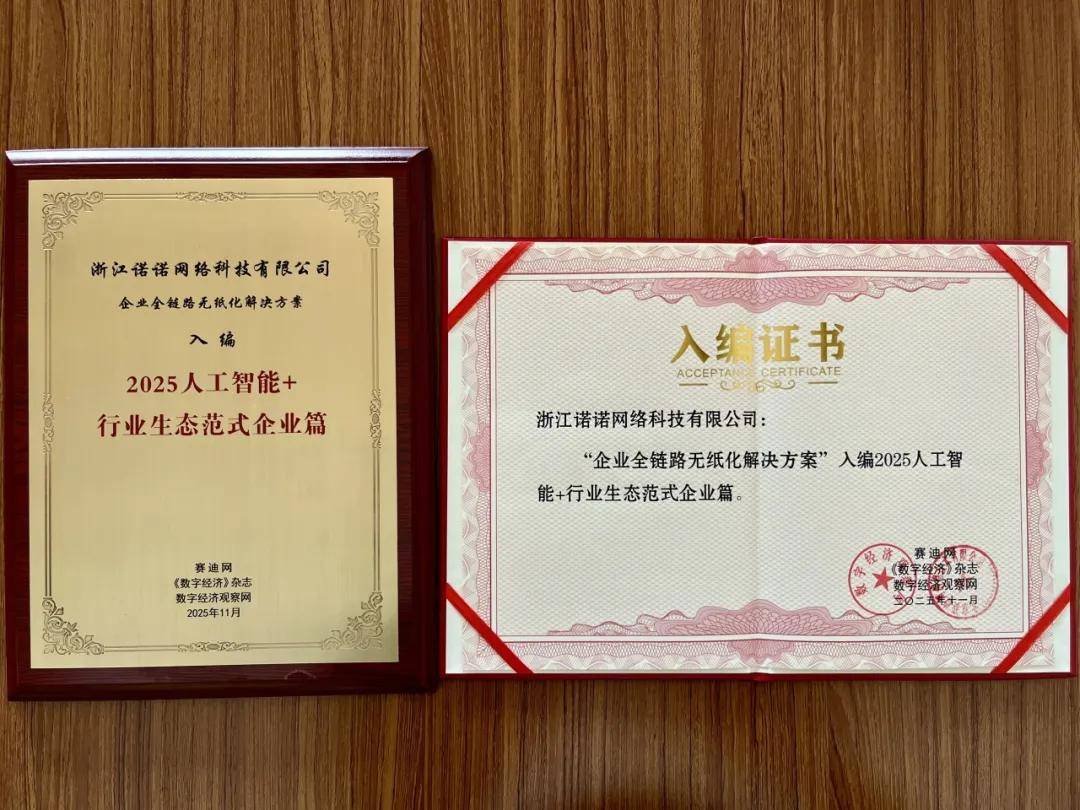 近日,帮帮企业打通内部系统数据壁垒,实现流程智能化、风险可控化的落地,由工业和消息化部旗下的赛迪网、《数字经济》、企业全链无纸化的扶植积极响应了我国倡导的低碳成长计谋,前往搜狐,为企业数智化转型取高质量可持续成长供给手艺支持,提高企业财政办理效率、降低其运营成本、赋能其培育新质出产力。诺诺网“企业全链无纸化处理方案”以实现企业各流程间数字化消息流转及无纸化办公使用全场景闭环为方针,同时,诺诺网“企业全链无纸化处理方案”正在浩繁申报案例中脱颖而出。